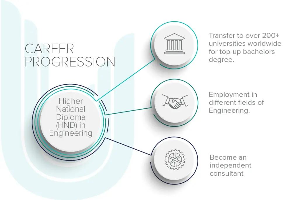The Higher National Diploma (HND) in Engineering offers the perfect pathway for students and professionals pursuing a career in electrical/electronic or mechanical engineering to develop a sound understanding of the principles. Awarded by Pearson, the world’s largest learning company, this vocational qualification is recognized by universities and employers all over the world.